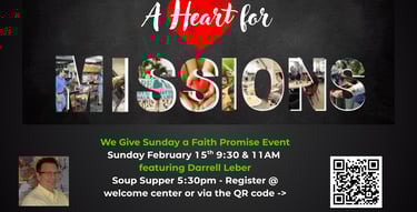 He will also be sharing more stories during an evening Soup Supper in our Family Life Center. So, if you want to be challenged and hear more great stories of lives being changed register by using the QR code above.